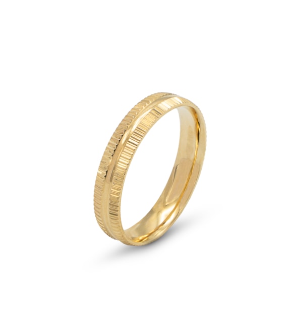Aliança meia cana amendoada polida com frisos horizontais laterais
