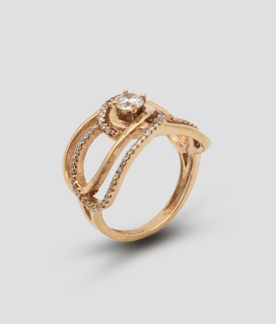 Anel com efeito abstrato com zircões