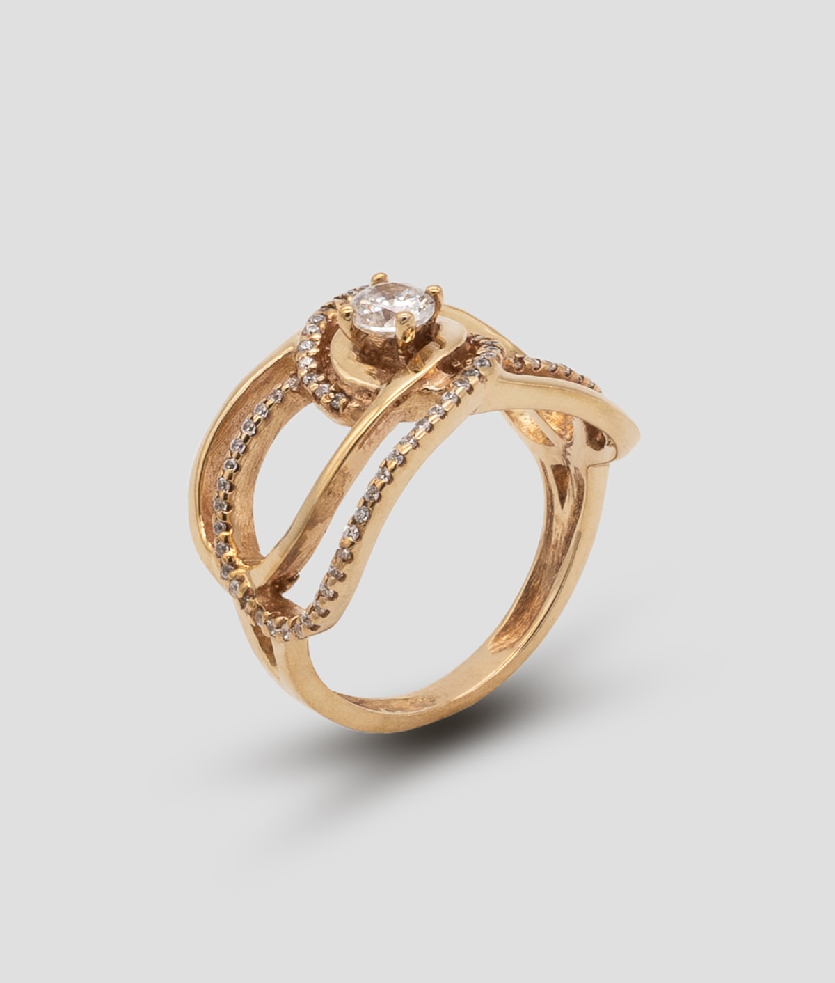 Anel abstrato com zircões