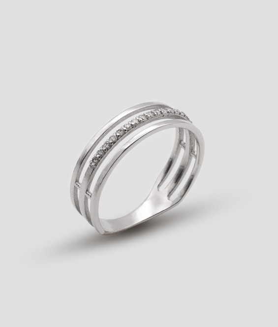 Anel com aberturas laterais com uma fila de zircões central