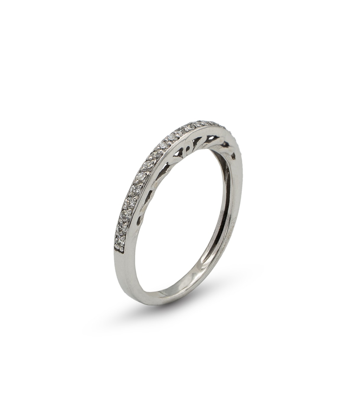Anel meia-memória cravado no topo e trabalhado transfurado nas laterais