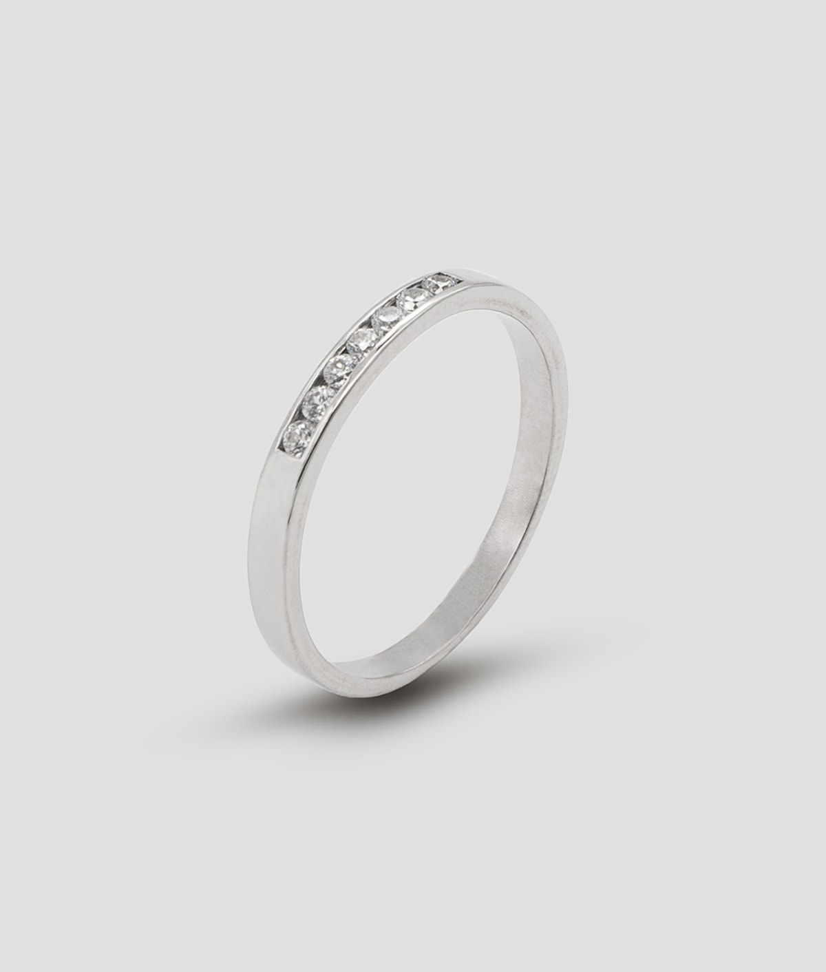 Anel meia-memória com zircões cravados em calha