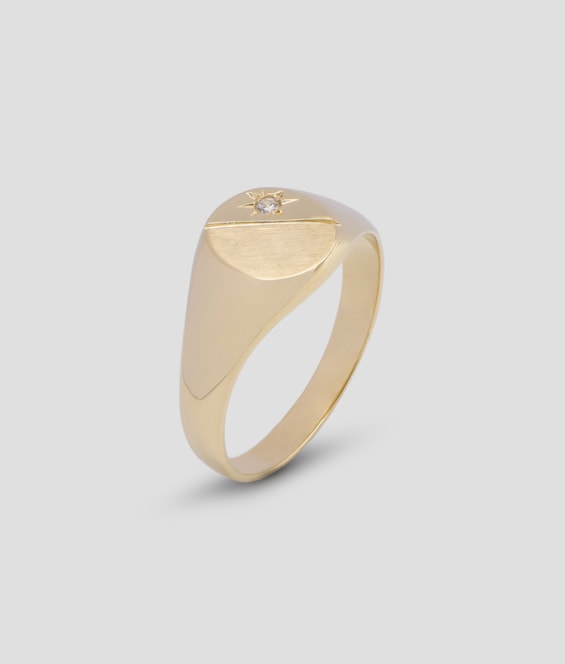 Anel com mesa oval com zircão em forma de estrela