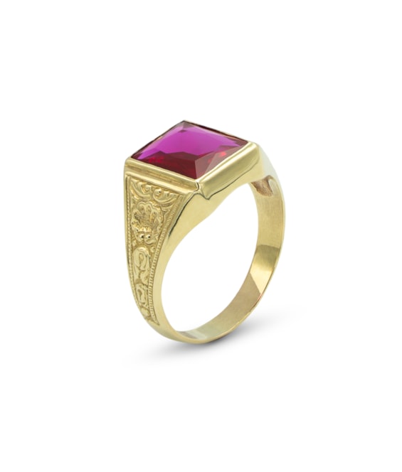 Anel com mesa retangular com zircão e desenhos abstratos no aro