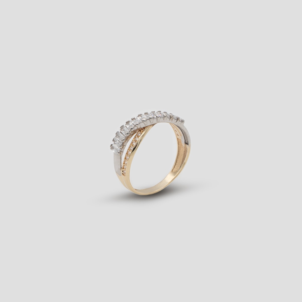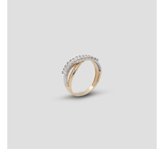 ANEL SENHORA BICOLOR CRUZADO COM ZIRCÕES E NAVETES