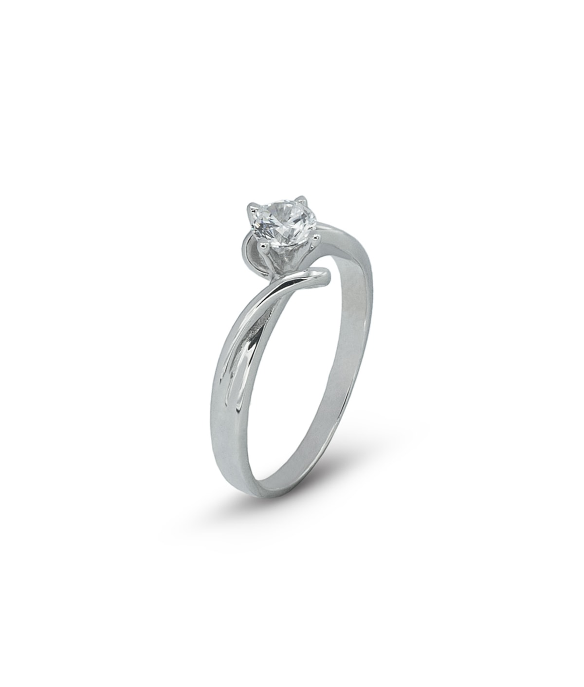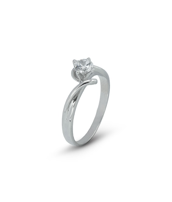 Anel solitário com zircão redondo com quatro garras e aro torcido