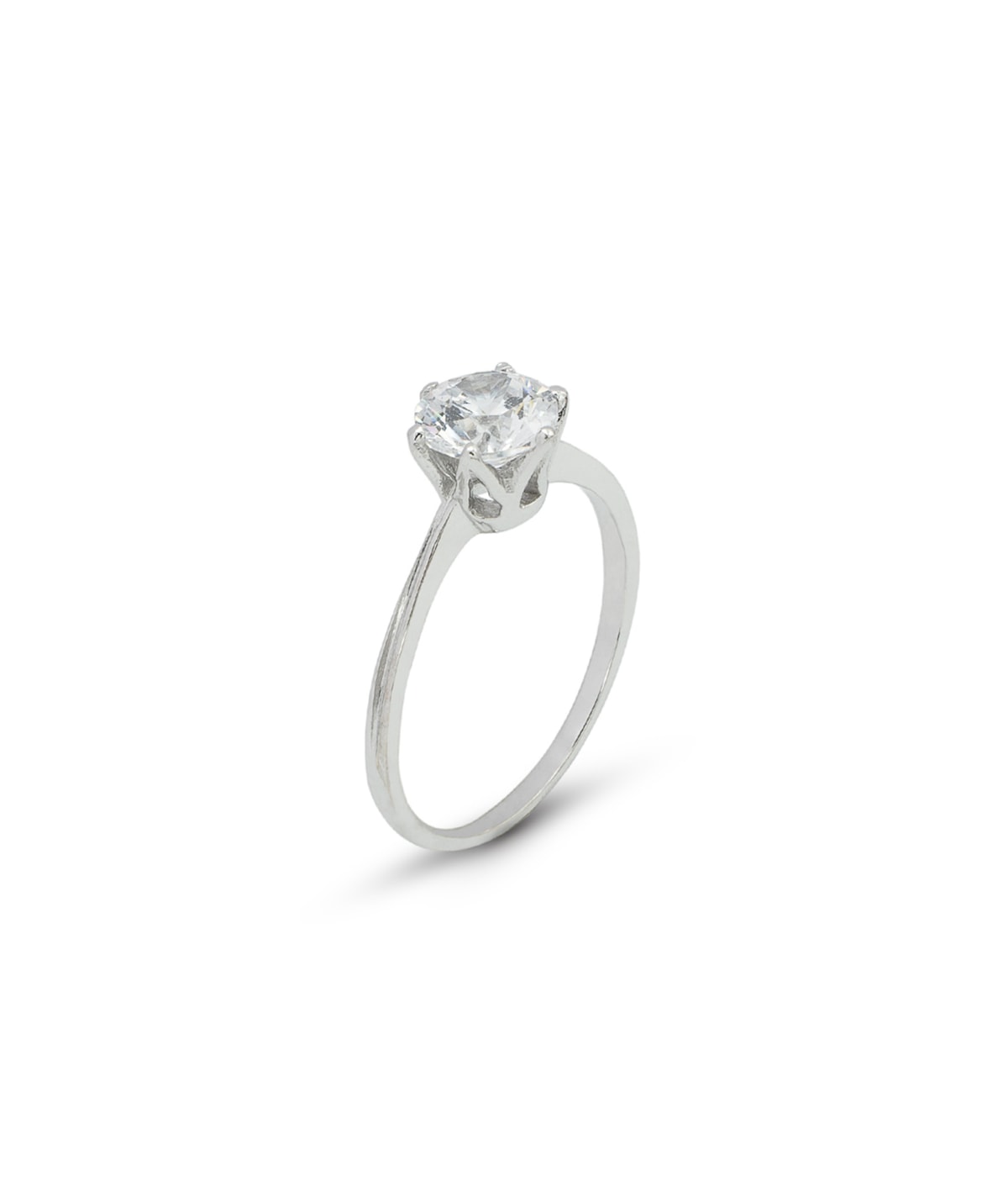 Anel solitário com zircão redondo central com seis garras