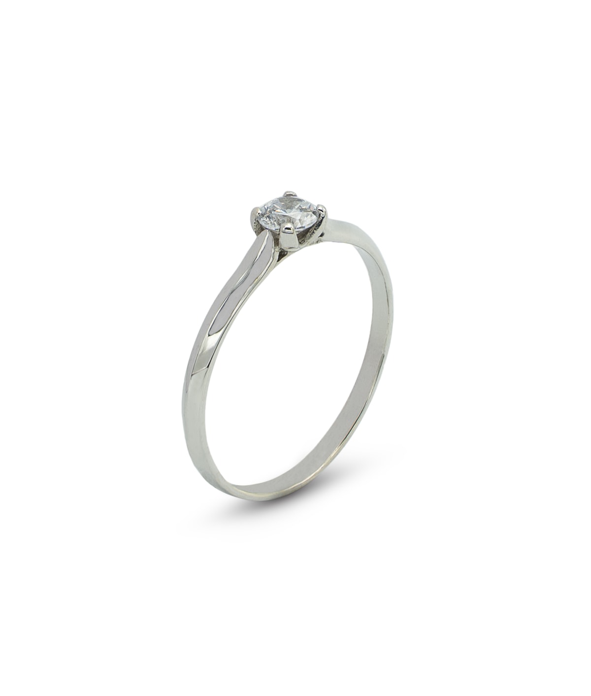 Anel solitário com zircão redondo com quatro garras